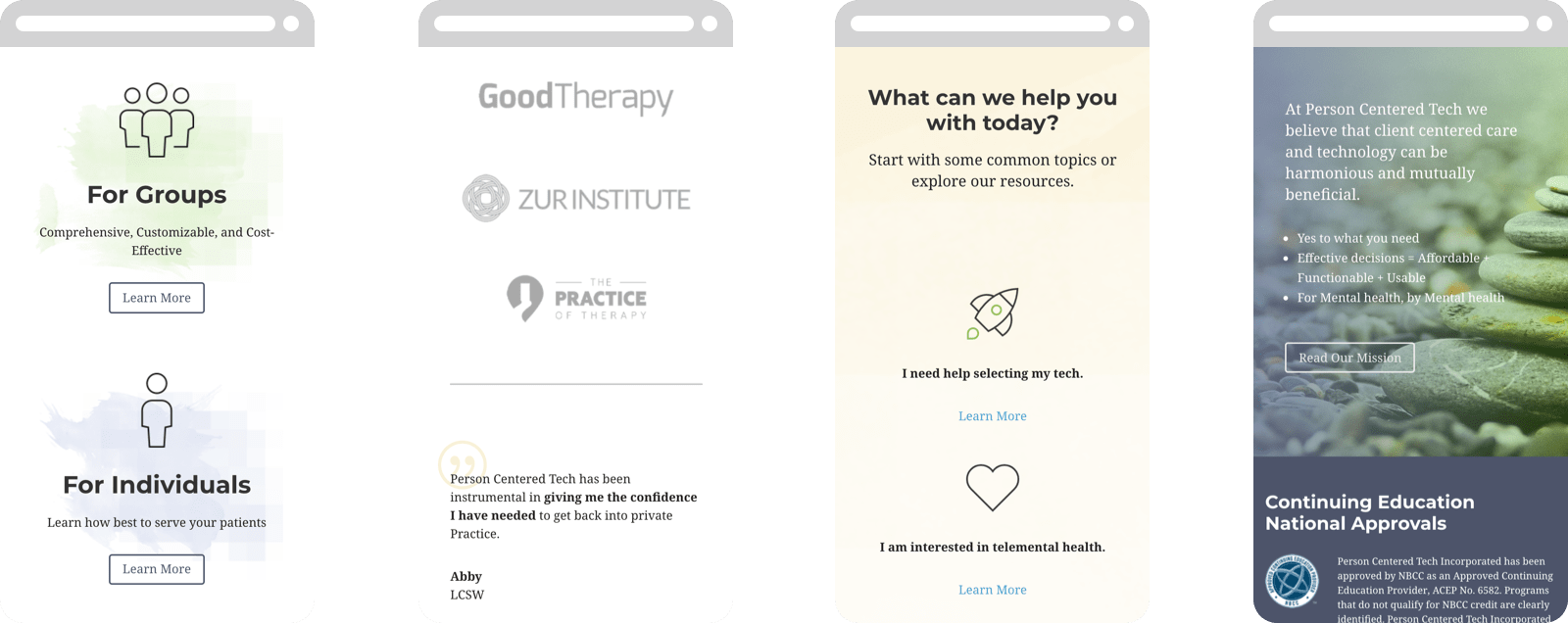 The WordPress site now unencumbered with the heft of sophisticated membership and LMS functionality, it is now able to communicate the benefits and many incredible resources Person Centered Tech has to offer.